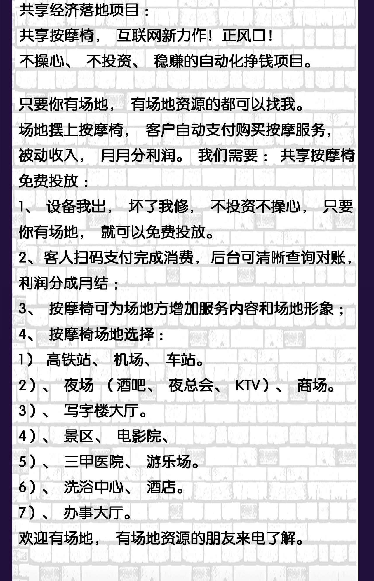 寻找场地资源者合伙人找我共享按摩椅免费投放